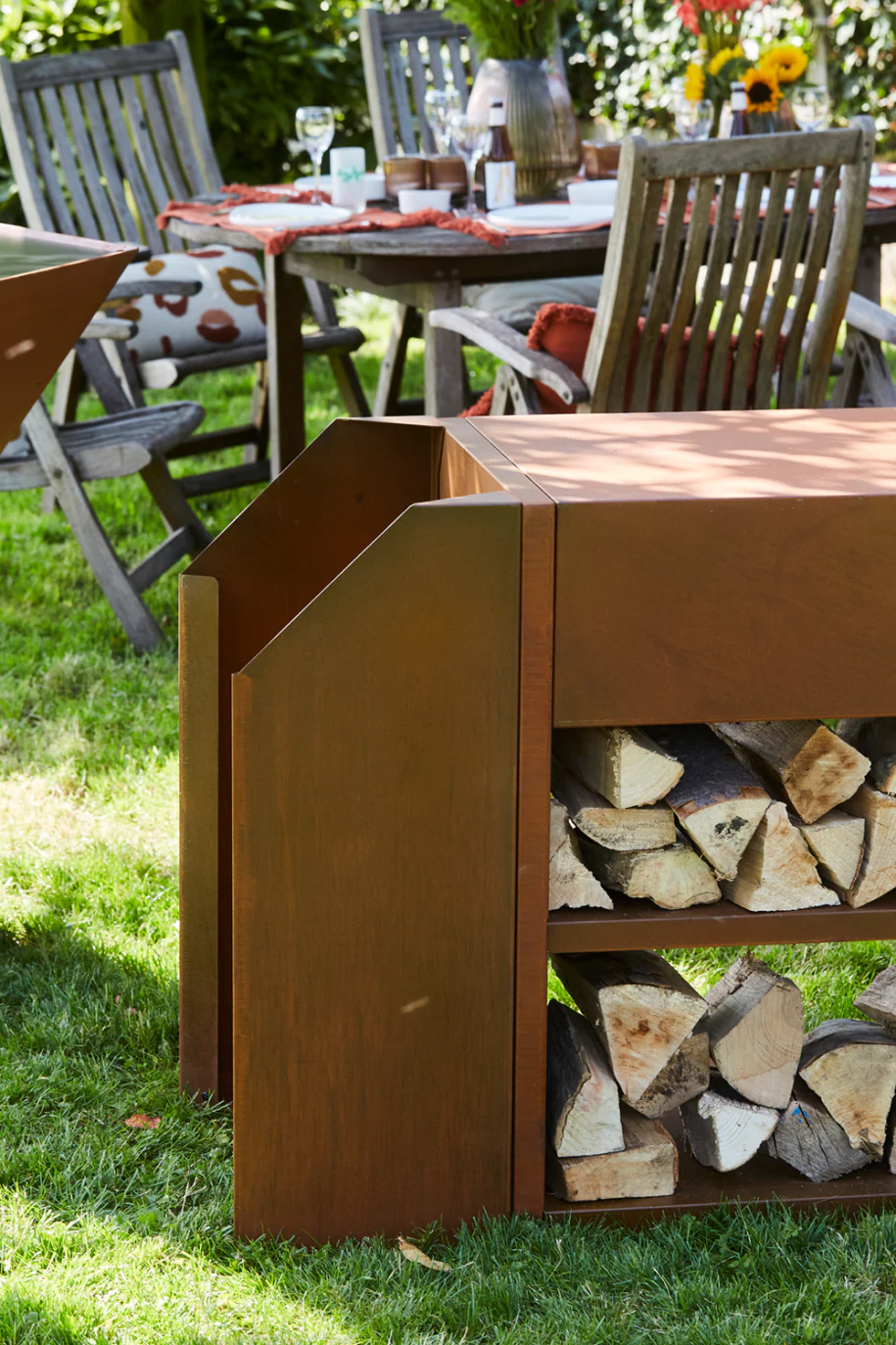 L’Adaptateur Nestor et le Buddy offrent ensemble beaucoup d’espace pour stocker le bois ! Prenez quelques blocs de bois depuis la zone de stockage, placez-les dans la cuve du Nestor, et allumez facilement le barbecue avec quelques allume-feux. N’oubliez pas de bien enduire les plaques d’huile naturelle avant et après chaque utilisation pour une durabilité accrue.