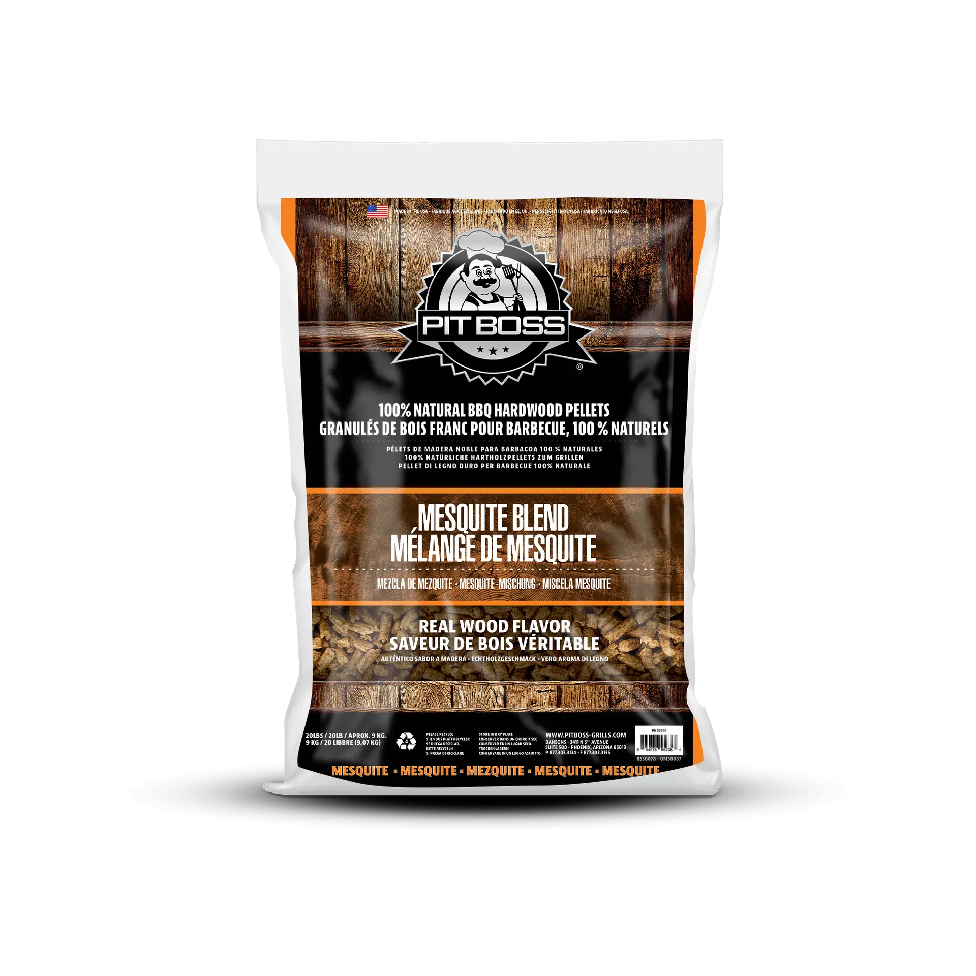 Appréciez le véritable arôme fort du Texas des granulés de bois dur Mesquite de Pit Boss, Piquant, Épicé, Authentique.