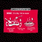 Facile et rapide à utiliser, il suffit de frotter le mélange directement sur la viande avant cuisson — au barbecue, à la plancha, au four ou à la poêle — sans temps de marinade nécessaire.